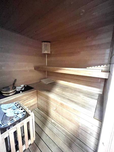 Möchte man die Sauna (für 2-4 Personen) benutzen, begibt man sich in den angrenzenden Flügel. Auch hier gibt es für Gäste ein großes Apartment welches an die ausgebaute Doppelgarage grenzt. Mit