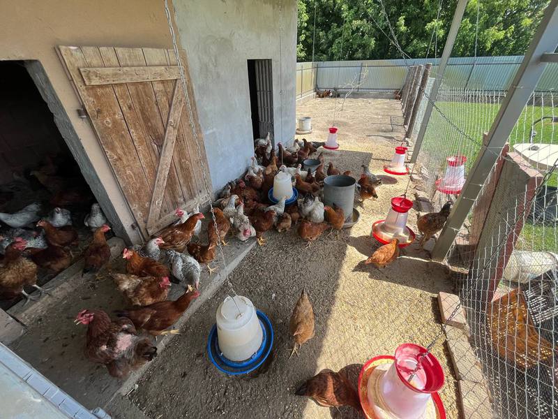 Hier gibt es ein weiteres, elektrisches Einfahrtstor und einen 2. Gartenteil mit Übergang zum professionellen Hühnerstall mit momentan rund 60 Hühnern. Diese Flächen können jedoch auch anderweitig