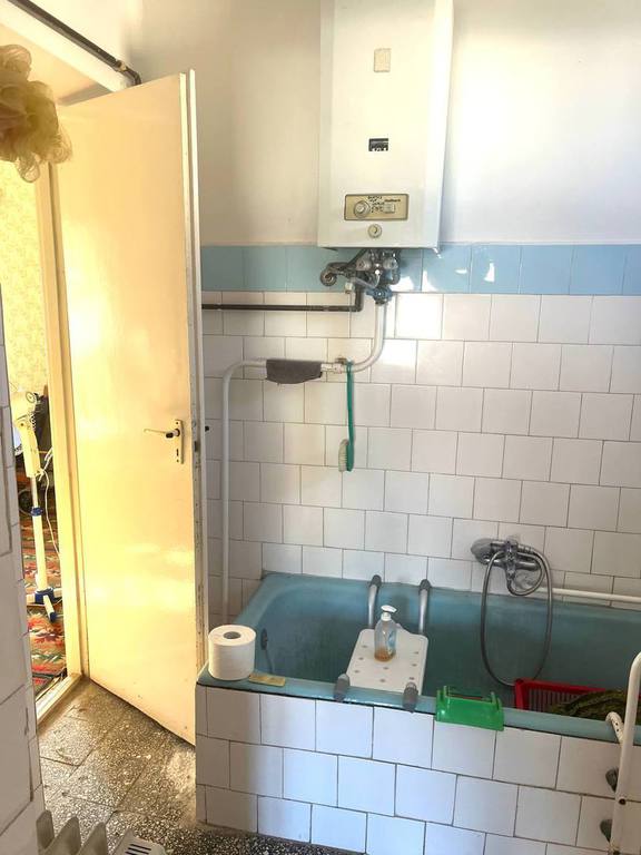 Das relativ kleine Badezimmer brauchte eine Auffrischung da vom Stil her etwas veraltet. Es hat Zugang von 2 Schlafzimmern, wovon eine gegebenenfalls auch zugemauert werden könnte um mehr Abstellfläche zu generieren.