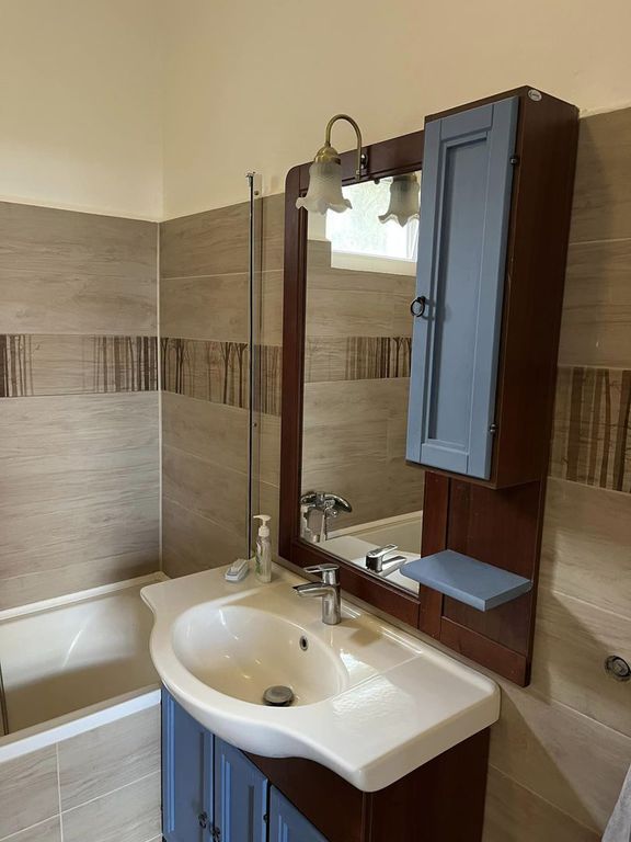 Das Grundstück mutet jetzt im Frühjahr noch etwas kahl an, ist aber im Sommer schön bepflanzt. Auch Apfel-/ Kirsch- und Feigenbäume sind vorhanden. Und Wein rankt sich vor der Terrasse