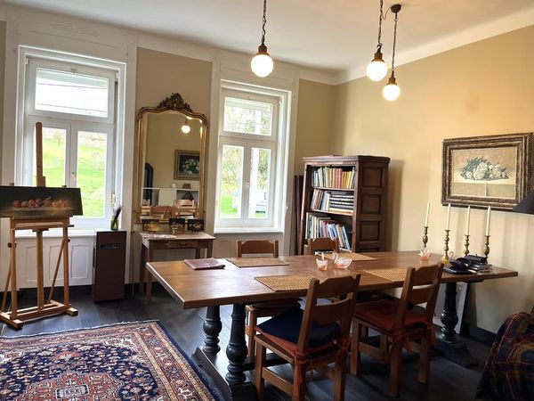Im größeren und herrschaftlicheren Teil sind die Decken mit ca. 3,60 sehr hoch. Im kleineren Teil sind sie immerhin noch ca. 3m hoch.